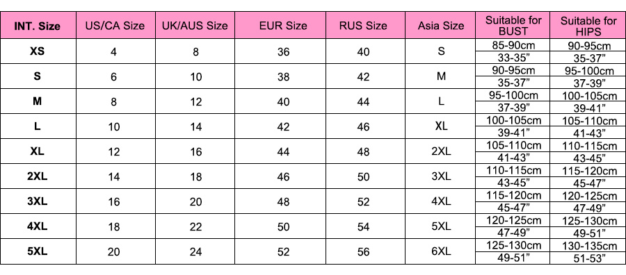 Ohyeah Body Stockings Size Chart(CM/IN)