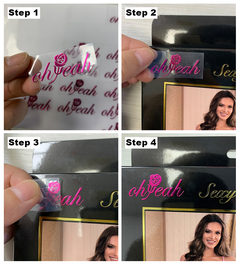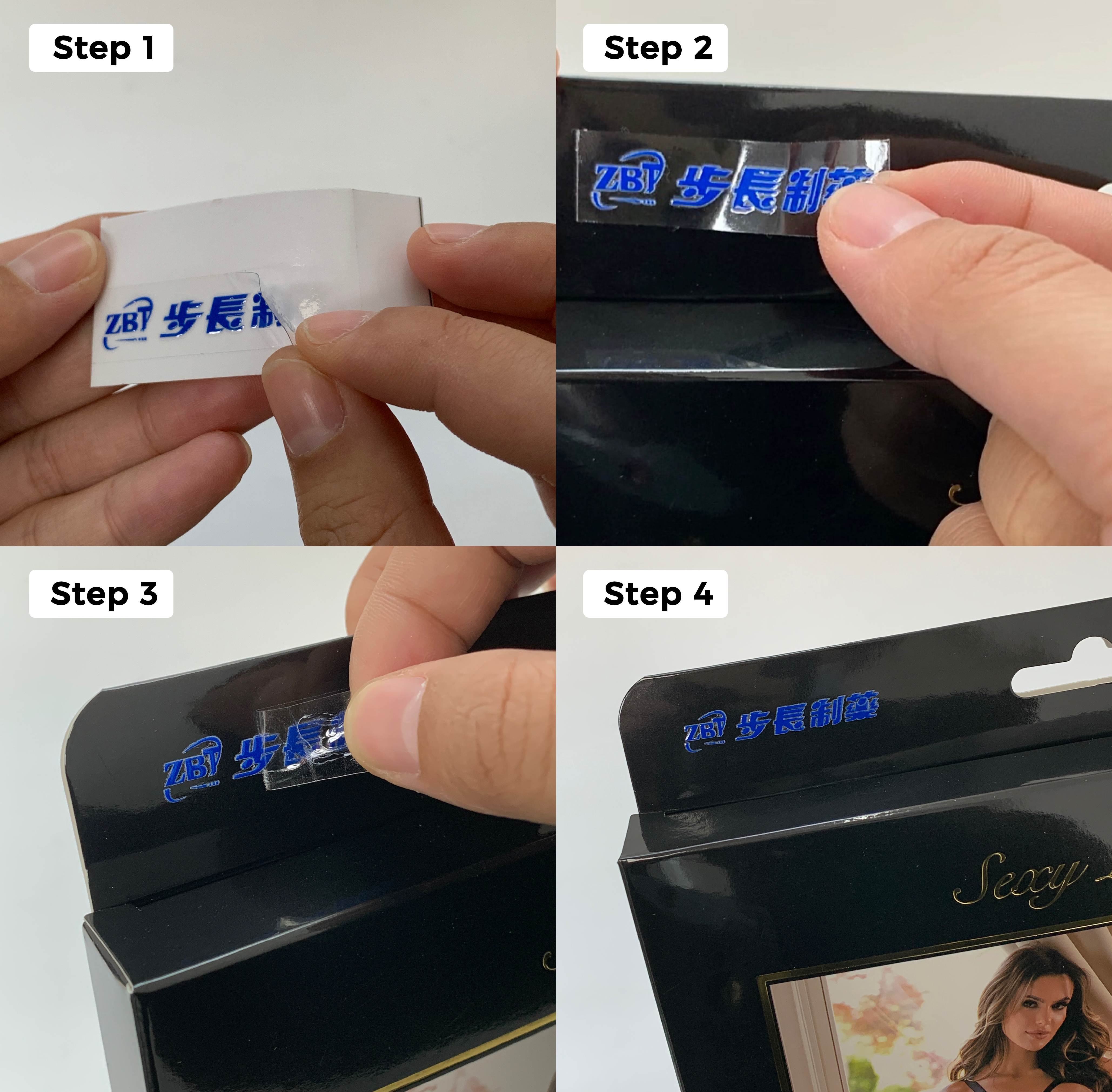 2>.Step 2: Stick the sticker on the products,using your finger press every details on firmly.