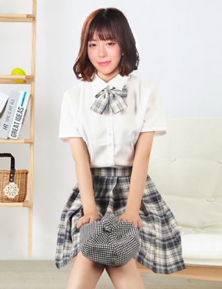 Sexy White Crop Top Plaid Sk...