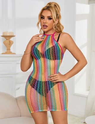 Sexy Rainbow Mesh Hollow Out...