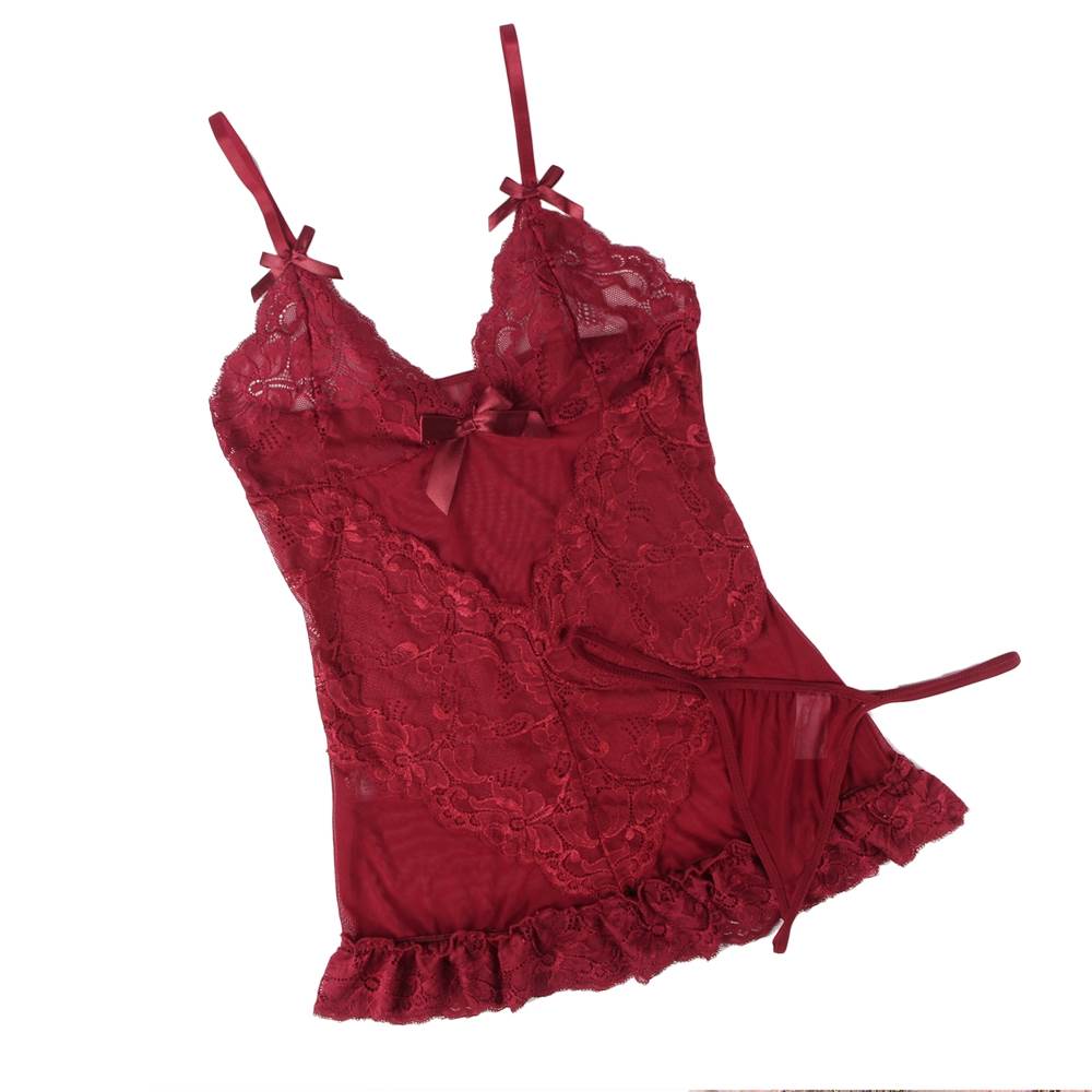 Looking for a sleepwear option that is both stylish and comfortable? Look no further than the R70218-3 pajamas from ohyeah. These pajamas are made from a combination of delicate lace and sheer mesh fabric, designed to flatter and accentuate the natural curves of the body. The V-shaped lace panel adds sophistication and style to the overall design, making these pajamas a favorite among fashion-conscious women. Available in three stunning colors - black, wine red, and purple - and sizes ranging from small to 7XL, these pajamas are perfect for anyone who wants to feel beautiful and comfortable at the same time. The inclusion of a thong panty completes the look, making these pajamas a must-have addition to any lingerie collection. Not only are these pajamas stylish, but they are also incredibly comfortable to wear. The soft mesh and lace fabric feels gentle against the skin, ensuring a good night’s sleep. And with adjustable shoulder straps, anyone can achieve the perfect fit. In summary, the R70218-3 pajamas from ohyeah are the ultimate in luxury and comfort. With their exquisite lace and mesh detailing, flattering design, and adjustable shoulder straps, these pajamas are sure to become a favorite for anyone looking for a comfortable and stylish sleepwear option. Don’t wait - order yours today!