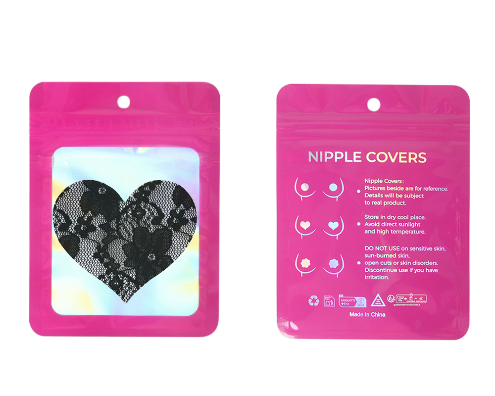 Standard product name: Black, heart-shaped lace pattern, ultra-thin seamless, no adhesive in the delicate area, one size, disposable black lace heart-shaped nipple covers.