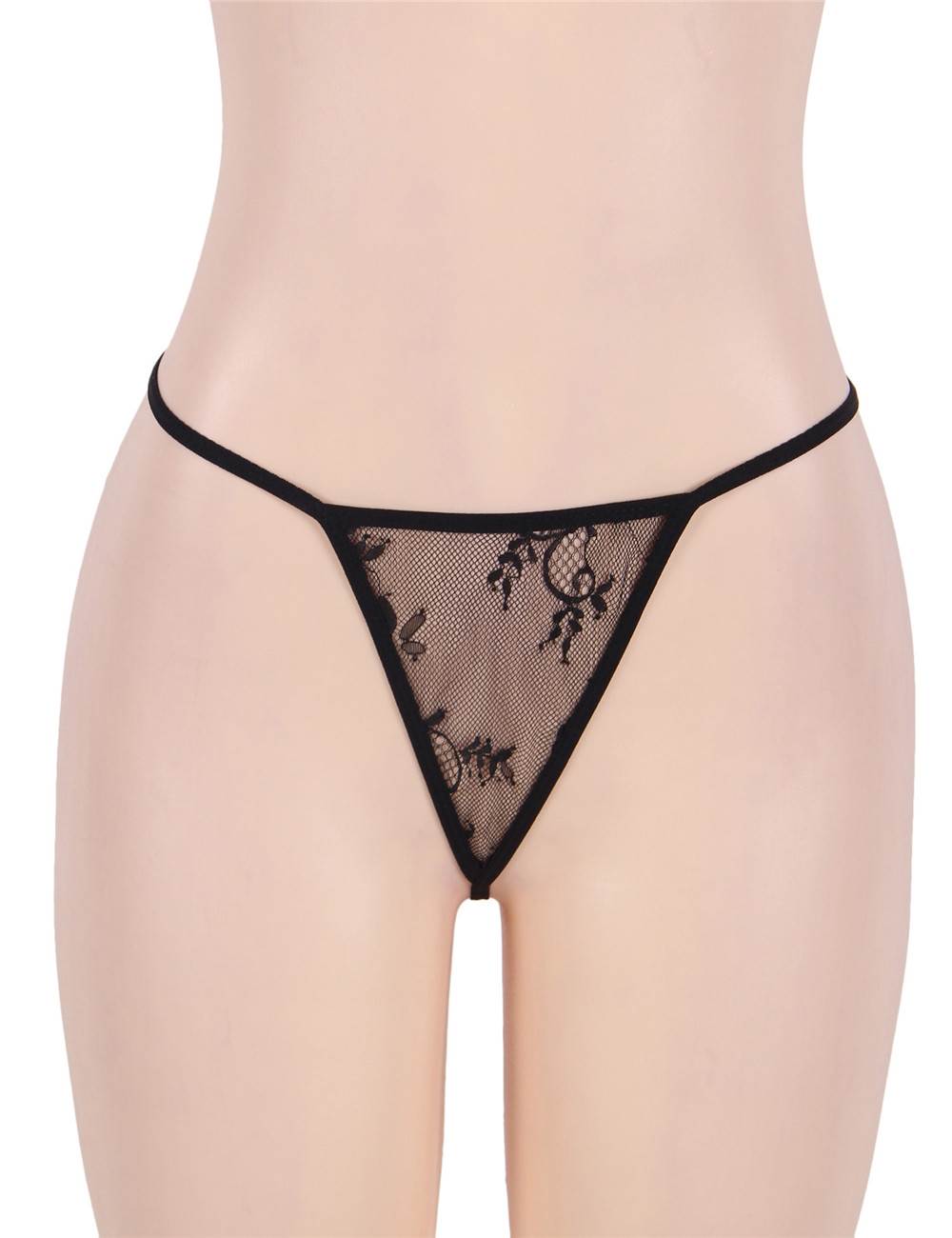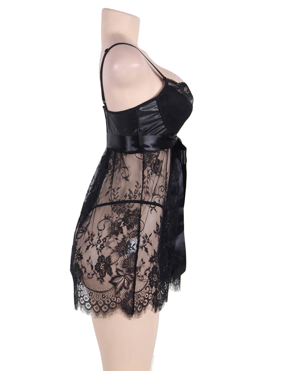 Product Name Sexy Black Eyelash Lace Chest Pad Plus Size Sleepwear With Thong