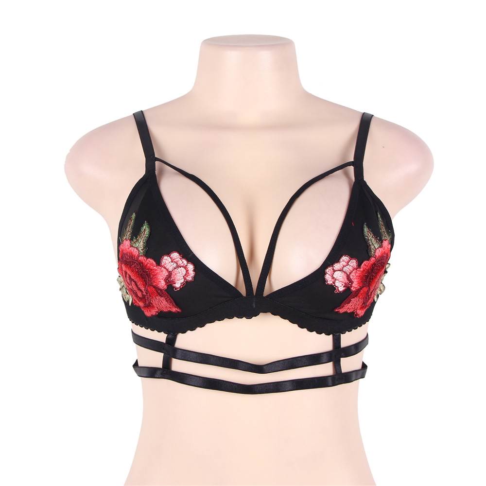 Home > T-shirt Bra&Push-up Bra > Rose Embroidery Black Double Caged Bralette