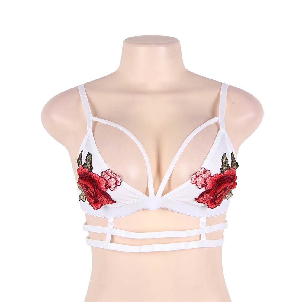 Home > T-shirt Bra&Push-up Bra > Rose Embroidery White Double Caged Bralette