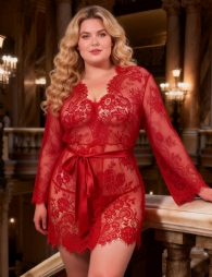 The Ohyeah R80552 Plus Size Lingerie is a product that offers a variety of benefits for women seeking comfortable, practical, and beautiful lingerie. The main fabric of this lingerie is made of high-quality eyelash lace, which gives the garment a natural and delicate feel. The neckline, cuffs, and hem all feature raw eyelash lace, which adds a touch of sophistication and elegance. The long-sleeved cardigan style is another significant advantage of this lingerie, which is both elegant and classy. The garment is available in two classic colors of black and red, which add a dramatic and sexy element to the overall look. The R80552 Plus Size Lingerie also includes a matching silk-like waistband, which is both stylish and convenient. The waistband can be adjusted to fit the wearer comfortably, and it can be removed if desired. This adds an element of versatility to the garment, making it perfect for a range of occasions. In addition to the long-sleeved cardigan style, the R80552 Plus Size Lingerie also includes a sexy lace short robe, which adds an element of excitement and sensuality to the overall look. This ultra-short robe is perfect for those who want to show off their curves and add a touch of sexiness to their lingerie collection. The garment is designed to fit a wide range of sizes, from small to 5XL plus size, making it accessible to women of all shapes and sizes. The garment also comes with a matching thong or G-string, adding to the overall sexiness and appeal of the garment. Overall, the R80552 Plus Size Lingerie from Ohyeah is a stunning garment that combines elegance, sophistication, and sensuality. Its key advantages include the use of eyelash lace, the long-sleeved cardigan style, the matching waistband, the short robe, and the range of sizes available. This lingerie piece is perfect for women who want to feel confident, sexy, and beautiful, whether for a special occasion or everyday wear.