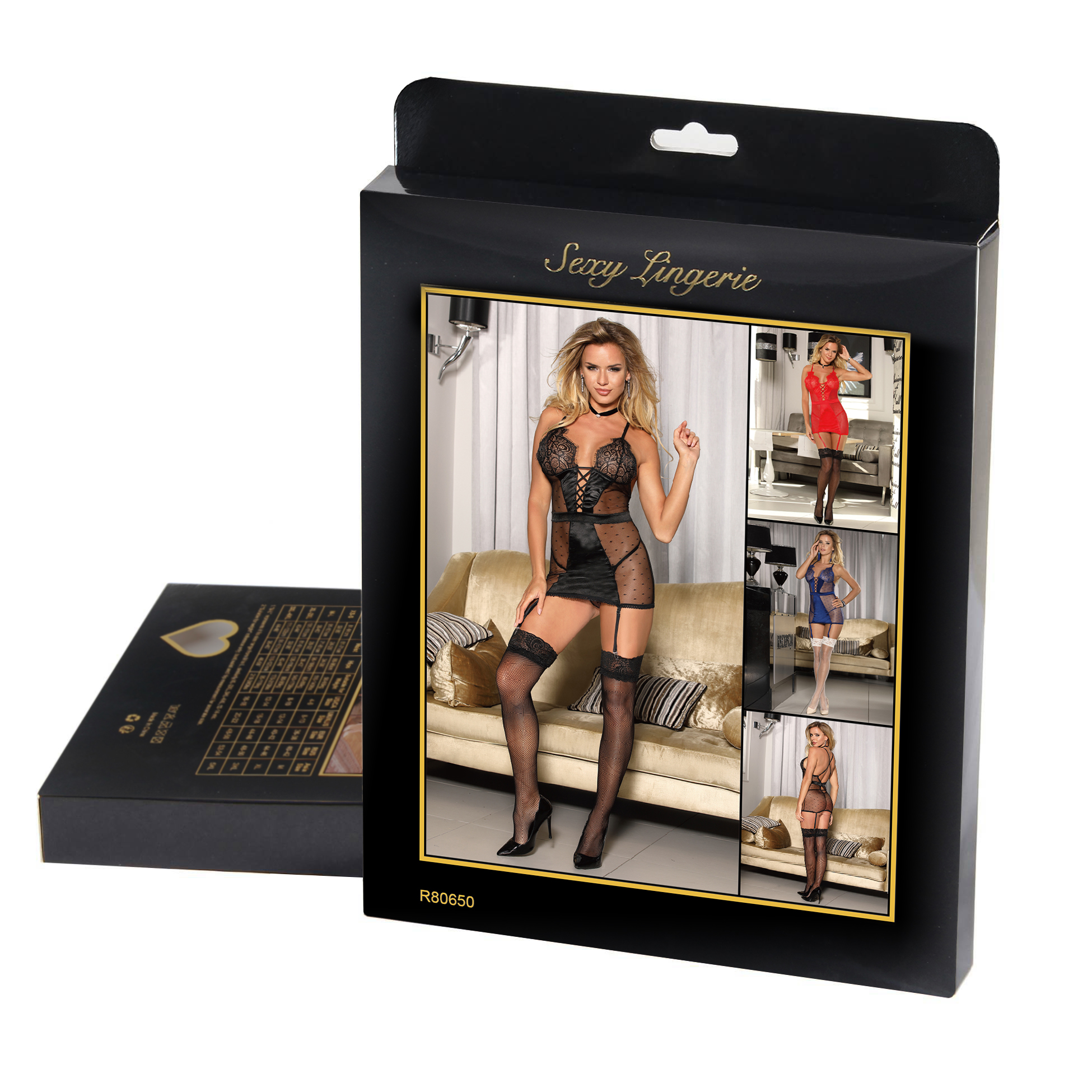 Introducing the latest lingerie from ohyeah, the R80650. This lingerie is designed to make women feel confident, sexy, and empowered. It has several features that make it irresistible, including its mesh fabric, eyelash lace, crisscross strap design, and adjustable shoulder straps that cross in the back. Let’s take a closer look at each of these features. The R80650 is made of mesh fabric, which is delicate, feminine, and breathable. It’s perfect for women who want to feel sexy and comfortable at the same time. The lingerie is available in plus sizes, making it accessible to women of all shapes and sizes. The lingerie has a super-short length and butt-hugging design that highlights curves and accentuates the figure. It’s designed to enhance natural beauty and make women feel confident and sexy. The package includes a practical and comfortable thong. The chest area of the R80650 is made of natural and gorgeous eyelash lace, which adds elegance and sophistication to the lingerie. The lace is soft and gentle against the skin, ensuring that women feel comfortable and sensual. It’s perfect for special occasions or romantic nights in. The front of the lingerie features a crisscross strap design that adds personality and style. The back of the lingerie is adorned with a waist buckle and hollowed-out design, which are both unique and sensual. The shoulder straps are adjustable and cross in the back, adding to the lingerie’s overall allure. The R80650 comes in three different colors: black, red, and blue. It’s available in sizes S-5XL, including plus sizes. The lingerie also comes with a garter belt, which adds an extra layer of sexiness. It’s perfect for women who want to feel confident and empowered. In conclusion, the R80650 from ohyeah is the ultimate lingerie for women who want to feel confident, sexy, and empowered. Its mesh fabric, butt-hugging design, eyelash lace, and unique strap and buckle designs make it irresistible. Plus sizes are available, making it accessible to women of all shapes and sizes. The garter belt adds an extra layer of sexiness to the lingerie. Get ready to feel confident and sexy in the R80650 from ohyeah.