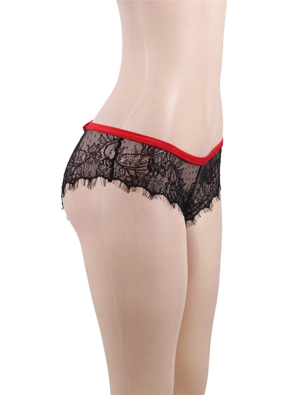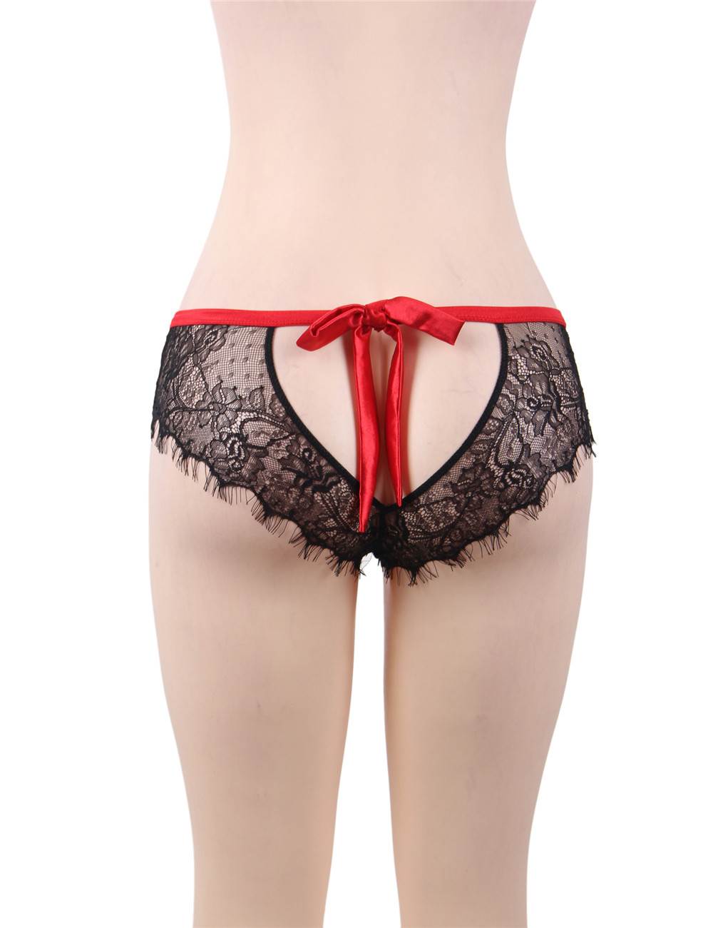 Product Name Sexy Black Lace Red Silk Strappy Panty