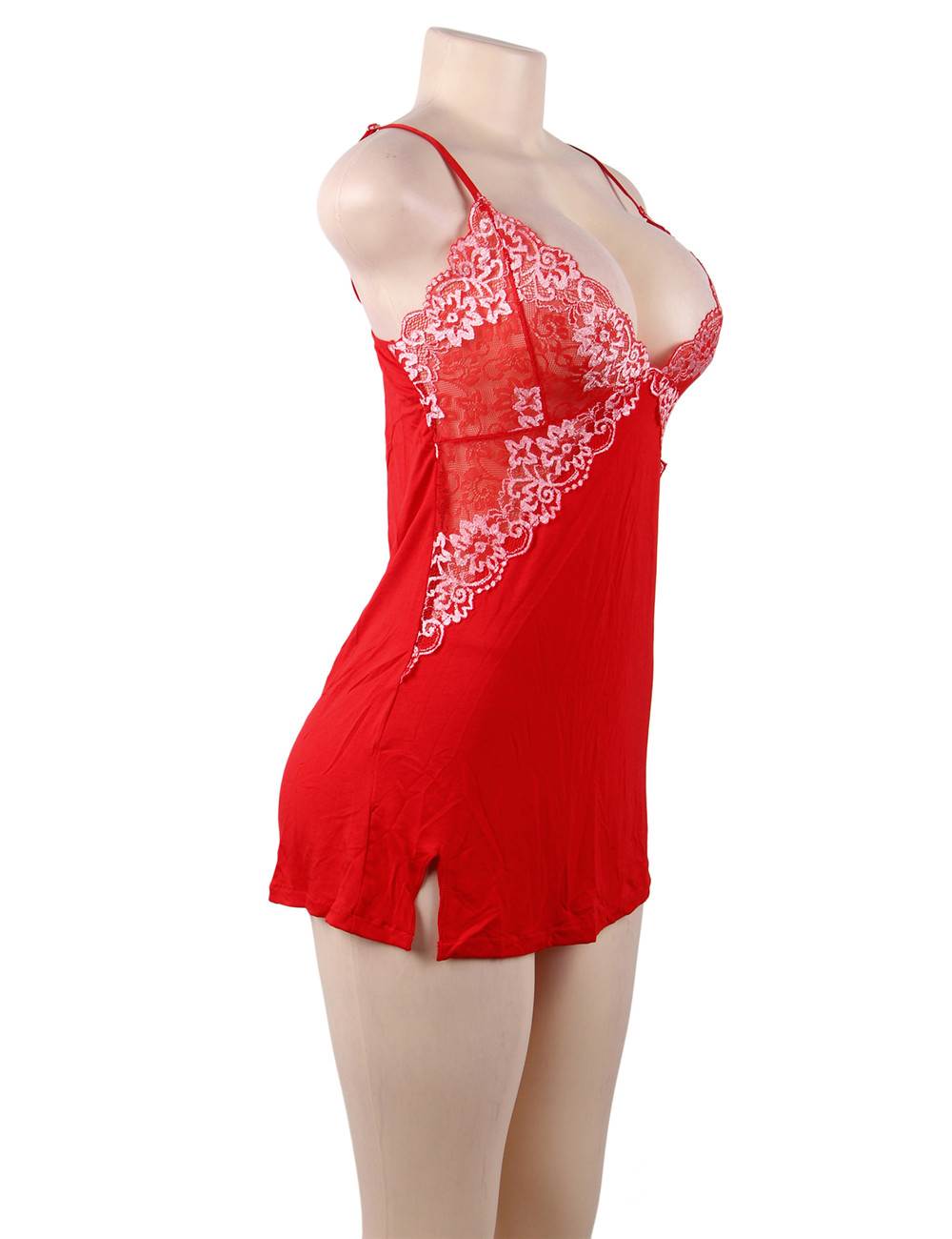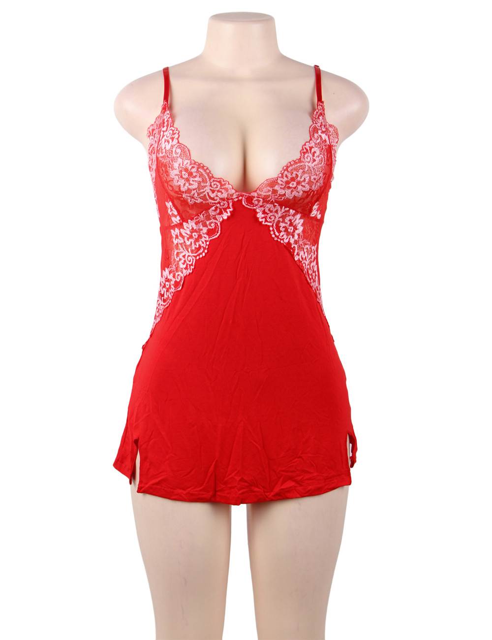 Home > Plus Size Pajamas Supplier > Lace Decoration Plus Size Nightdress V-neck Modal Sleepwear with G String