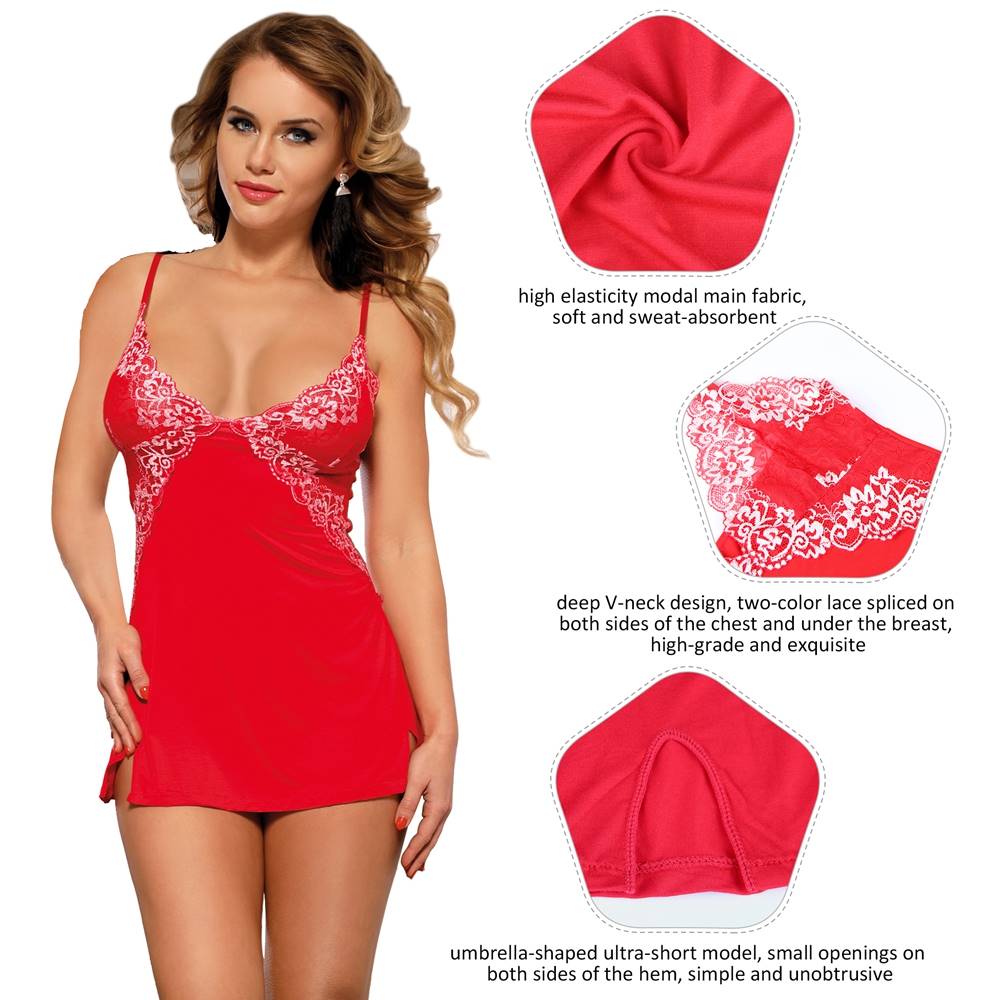 Product Name Lace Decoration Plus Size Nightdress V-neck Modal Sleepwear with G String