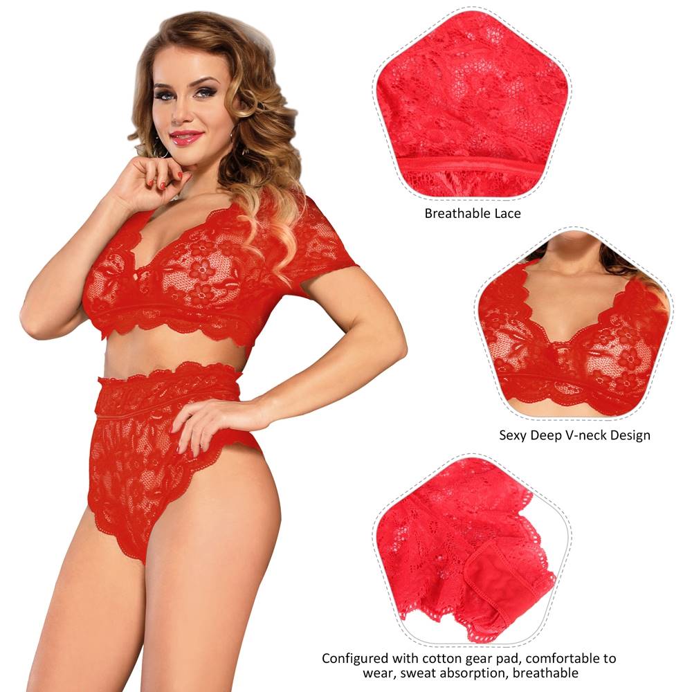 Product Name Plus Size High Waist Red Full Lace Bra Panty Underwear | Ohyeah