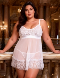Home > Sexy Babydoll & Chemise > Sexy White Eyelash Trim Lace Babydoll Set