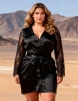 Home > Plus Size Pajamas Supplier > Eyelash Lace Plus Size Nightdress Silk Long Sleeves Black Sleepwear with G String
