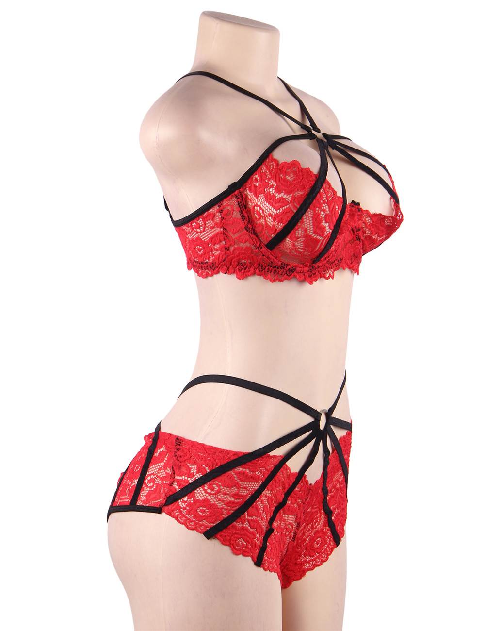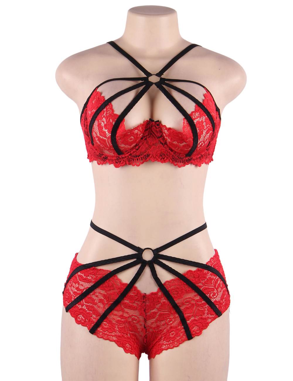 Product Name Plus Size Red Sexy Lace Underwire Sexy Bra Set