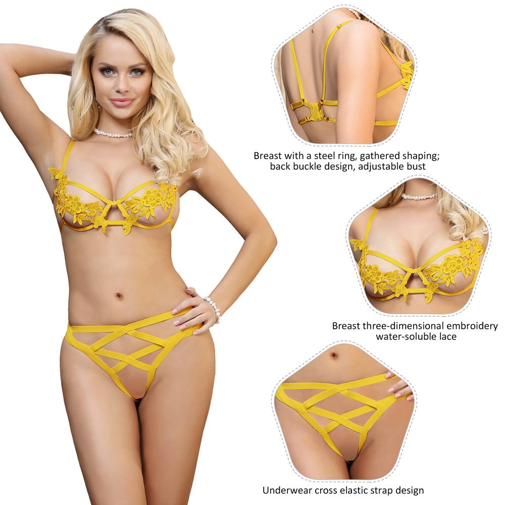 Home > Bra & Bra Sets Supplier > Yellow Elegant Embroidery Fashion Bra Set With Underwire