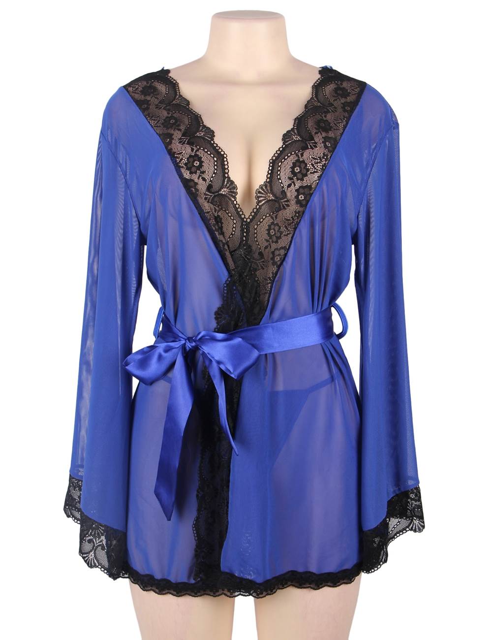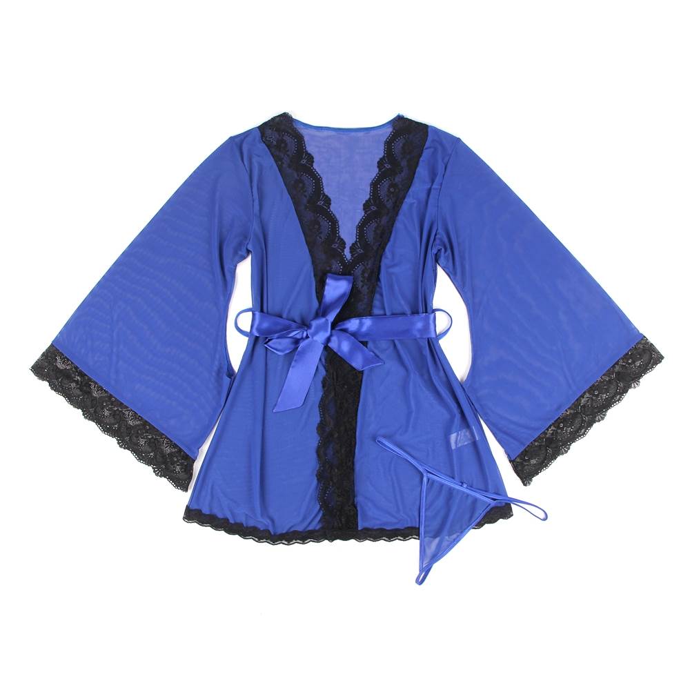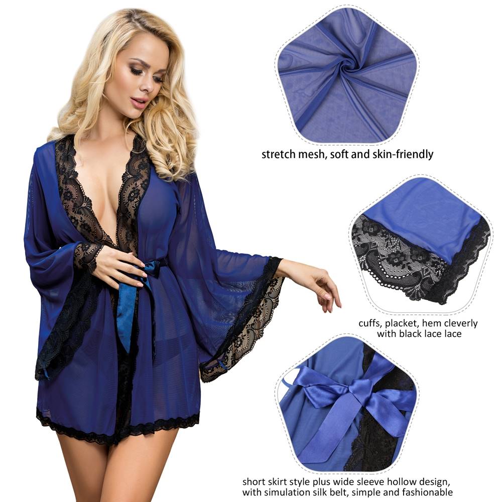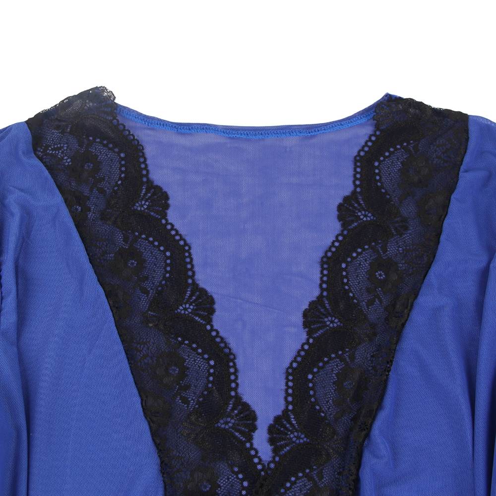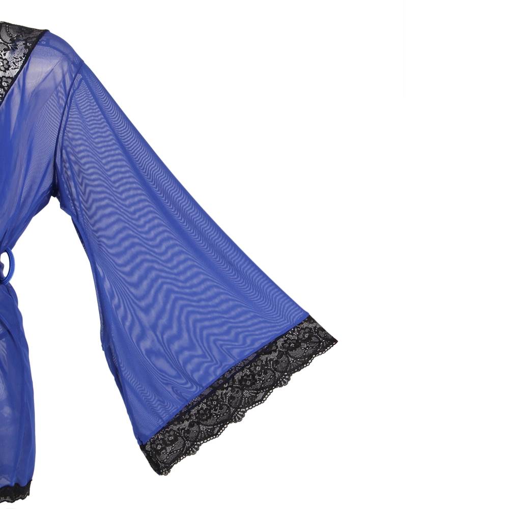 Product Name Sexy Long Sleeve Blue Mesh Plus Size Sleepwear With Belt