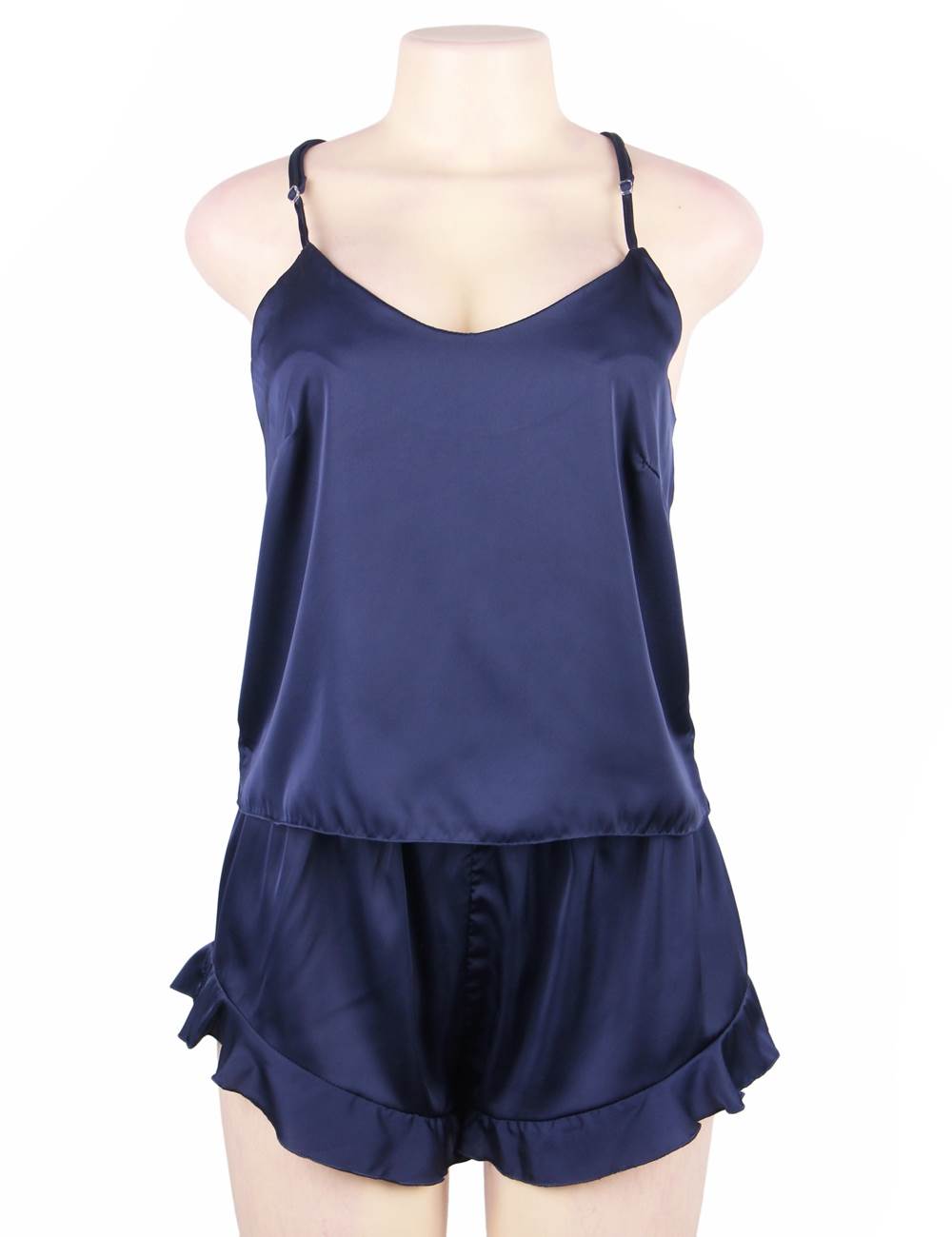 Product Name Camisole Satin Chiffon Plus Size Sleepwear with Ruffle Short Pants