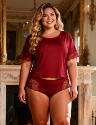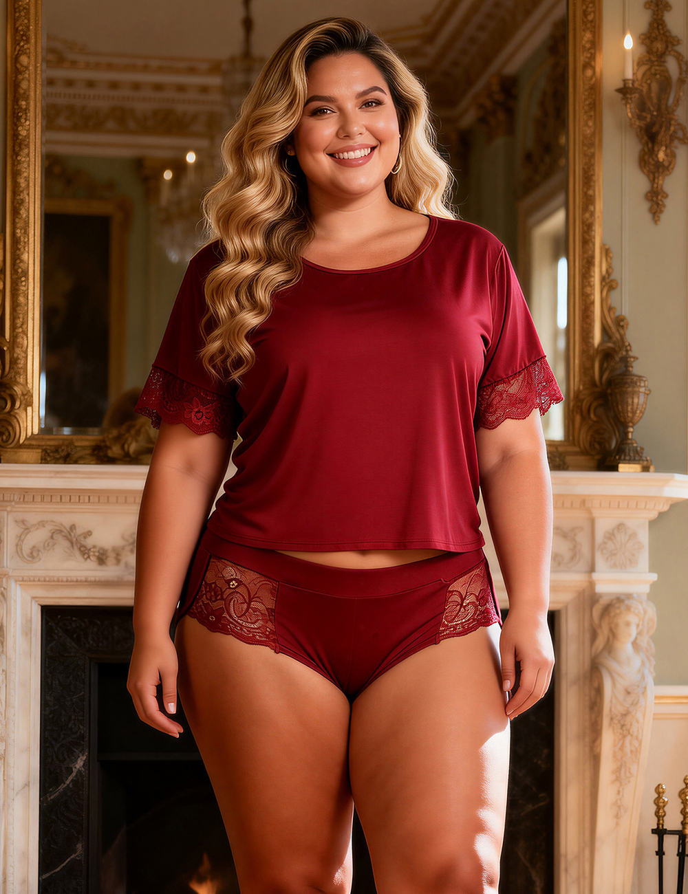Home > Plus Size Pajamas Supplier > Stretchy Modal Red Casual Sleepwear Plus Size Two-piece set