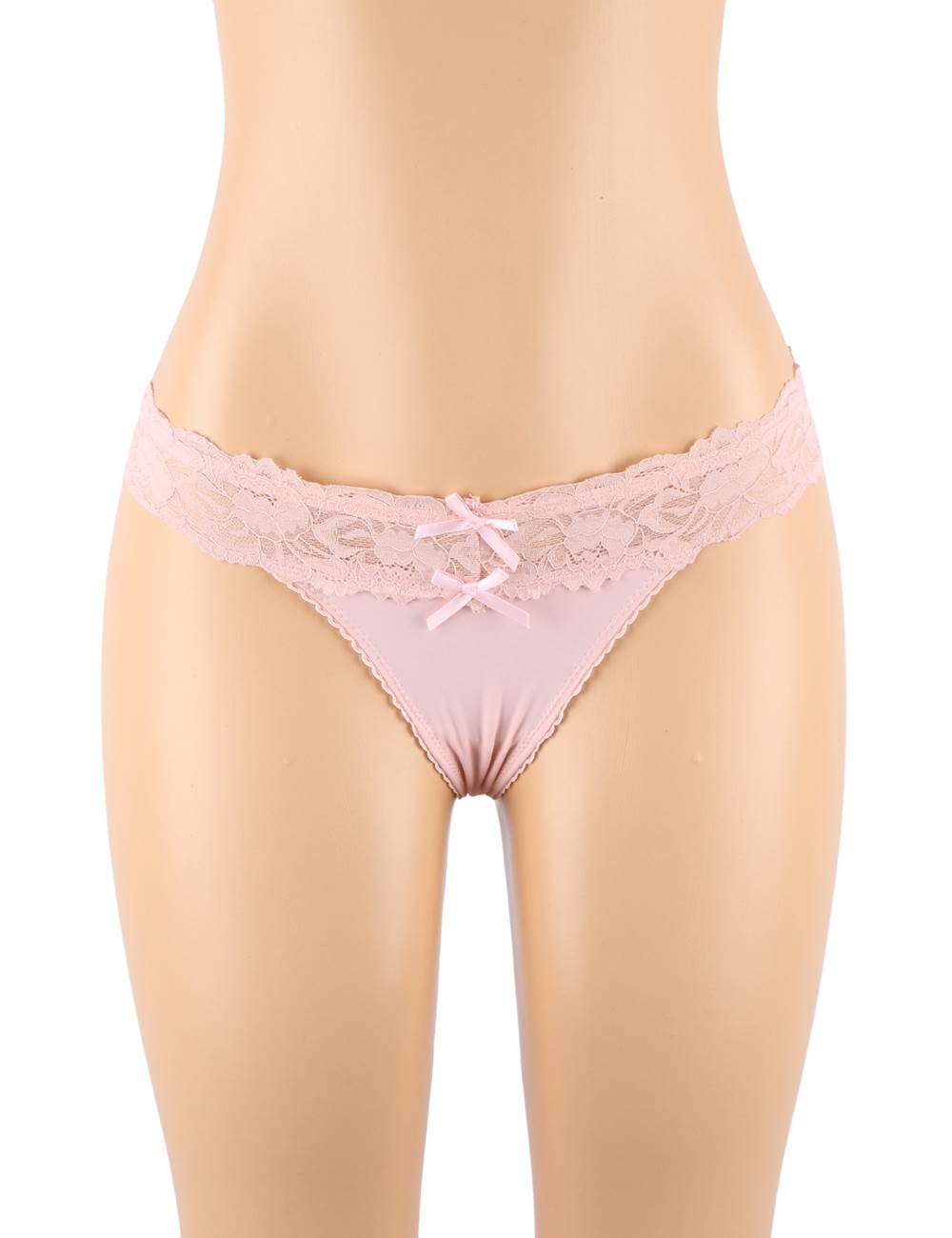 Introducing the P5186-3 panty from ohyeah company, designed to give you both comfort and confidence. This panty is made of a unique combination of lace mesh and ice silk material, making it a perfect choice for women who want to stay cool and feel sexy at the same time. The mesh fabric allows air to circulate, while the ice silk material wicks away moisture, keeping you dry and comfortable throughout the day. This is especially beneficial during hot summer days or for women who tend to sweat more than usual. The design of this panty is both cute and elegant, with a small bow tie on the front and criss-crossed silk ribbons on the back. This unique and alluring appearance is perfect for women who want to feel confident and sexy, without being too provocative. The cotton crotch lining ensures that this panty is comfortable to wear for extended periods of time. The cotton material is gentle on your skin, allowing for breathability and absorption, which is essential for women who want to prevent any irritation or discomfort. Overall, the P5186-3 panty is an excellent choice for women who want to feel both comfortable and sexy. Whether you’re looking for everyday wear or for a special occasion, this panty is sure to make you feel confident and beautiful. So why not treat yourself to the P5186-3 today and experience the ultimate in comfort and style?