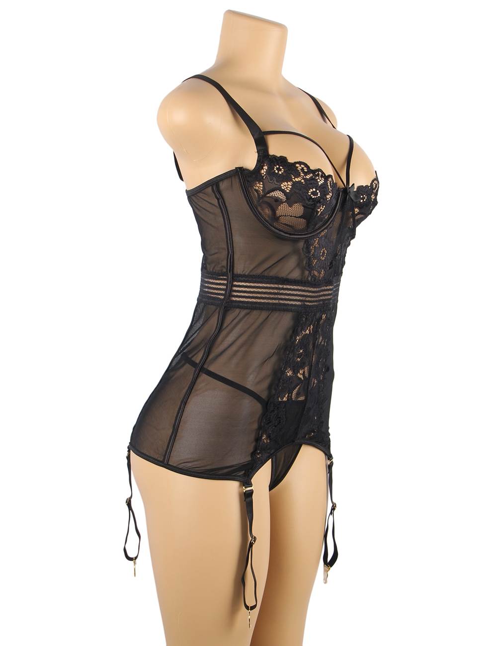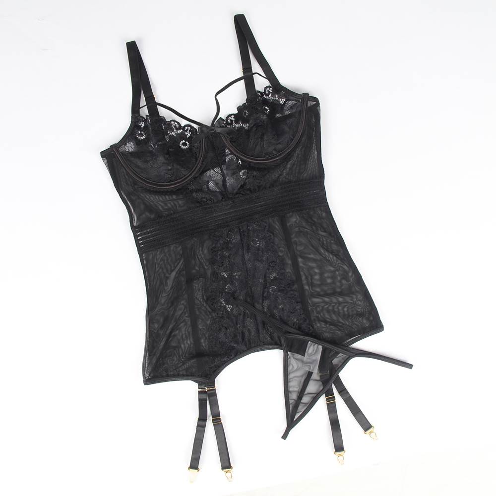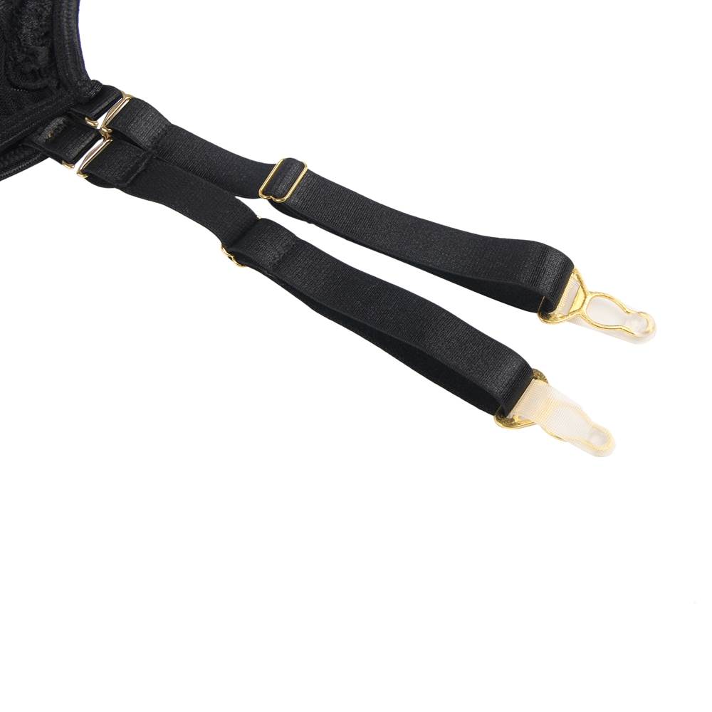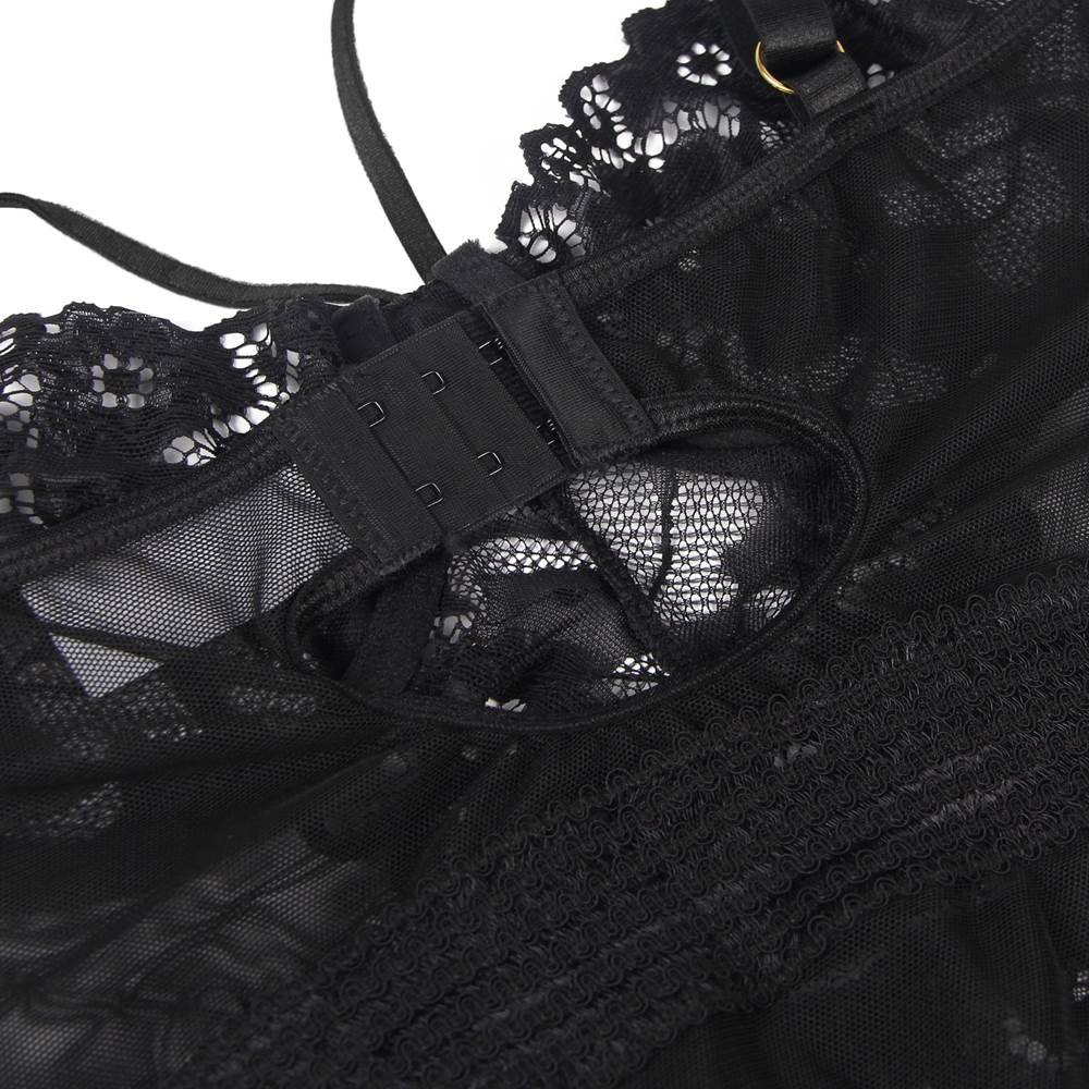 Introducing the latest addition to ohyeah’s lingerie collection - the R80983 Lingerie. This lingerie set is available in two colors - black and burgundy, and is designed to accentuate a woman’s natural curves. It is made from high-quality materials and features a unique combination of design elements that sets it apart from other lingerie sets in the market. One of the standout features of this lingerie set is the steel ring that provides support to the breasts, giving them a lifted and rounded shape. This feature is perfect for women who want to enhance their cleavage and create a more feminine silhouette. Additionally, the back clasp design ensures that the lingerie set stays in place even during rigorous activities, making it ideal for a night out. The mesh and lace detailing of the lingerie set adds a touch of elegance and sophistication to its overall design. Not only is it visually appealing, but it also feels soft and smooth against the skin. The lingerie set also comes with a matching thong-style panty that is both comfortable and stylish. The adjustable shoulder straps allow for a customized fit, ensuring the lingerie set fits snugly and provides maximum support and comfort. The elastic band placed at the waist also provides a comfortable and secure fit without digging into the skin. The circular hollow design at the back adds a touch of sensuality to the overall design. Matching suspenders are included in this lingerie set, further complementing its overall look. They are made from the same high-quality materials as the lingerie set and feature a unique combination of mesh and lace detailing. To sum it up, the R80983 Lingerie set from ohyeah is the perfect choice for women who want to feel confident, sexy, and comfortable. With its unique design elements and high-quality materials, this lingerie set is the perfect combination of style and functionality. Get yours today and experience the ultimate in luxury and sensuality.