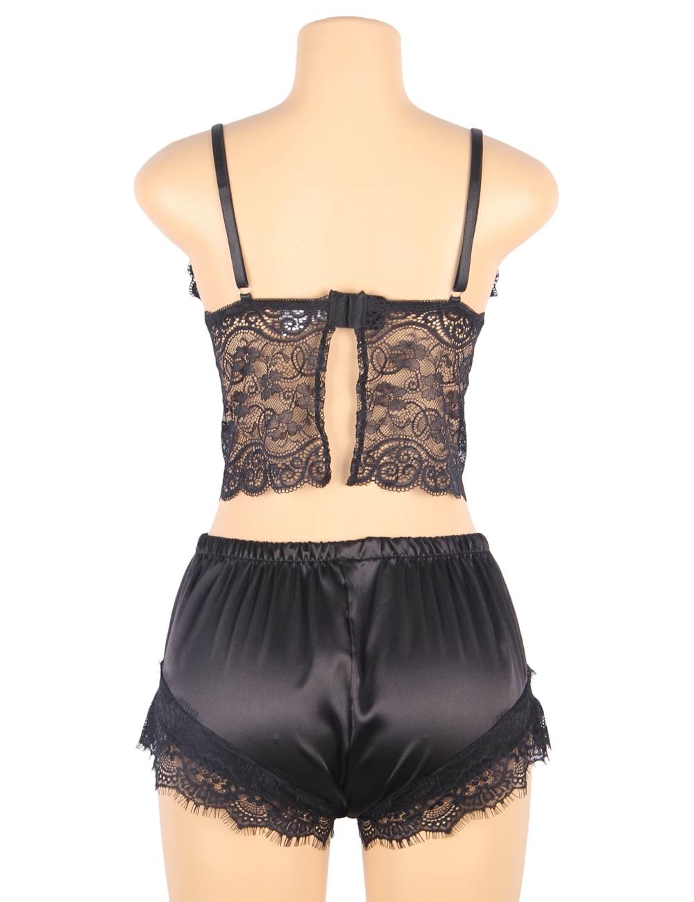 Product Name Casual Lace Silk Camisole Black Sleepwear Set