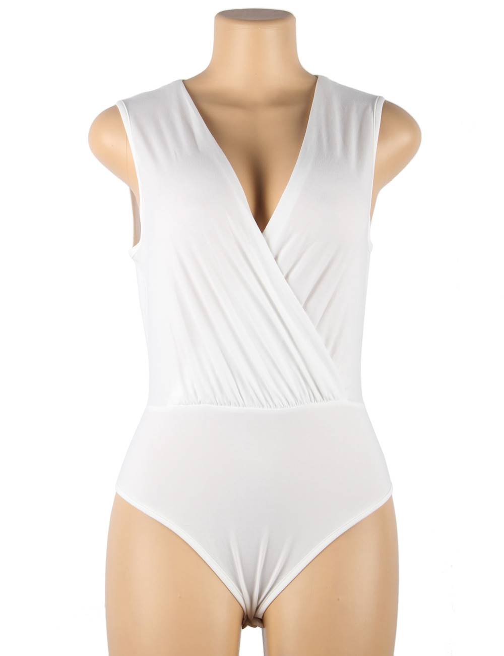 Home > Sexy Bodysuit Manufacture > Crotch Open One Piece Sleeveless White Deep V Fashion Bodysuit