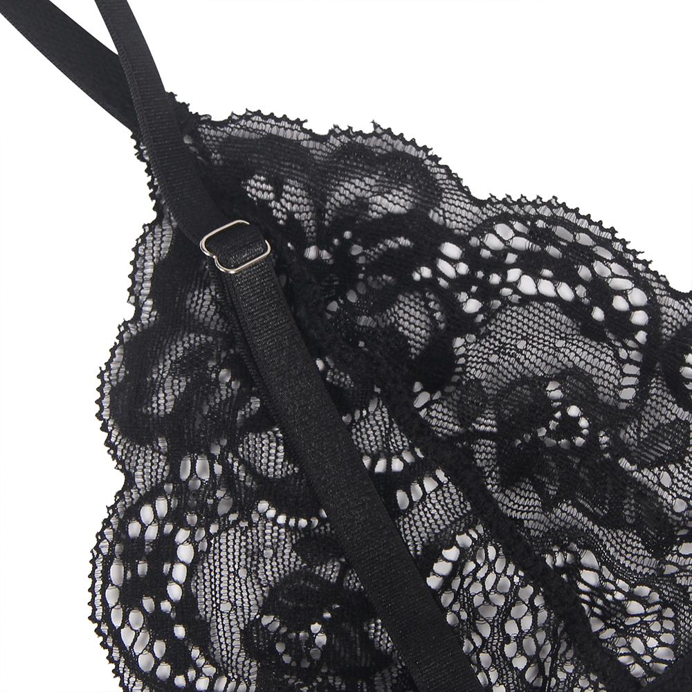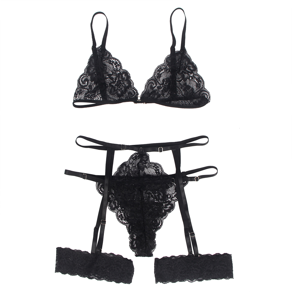 Product Name Black Lace Hollow Out Design Garter Belt Leg Ring Bra Set