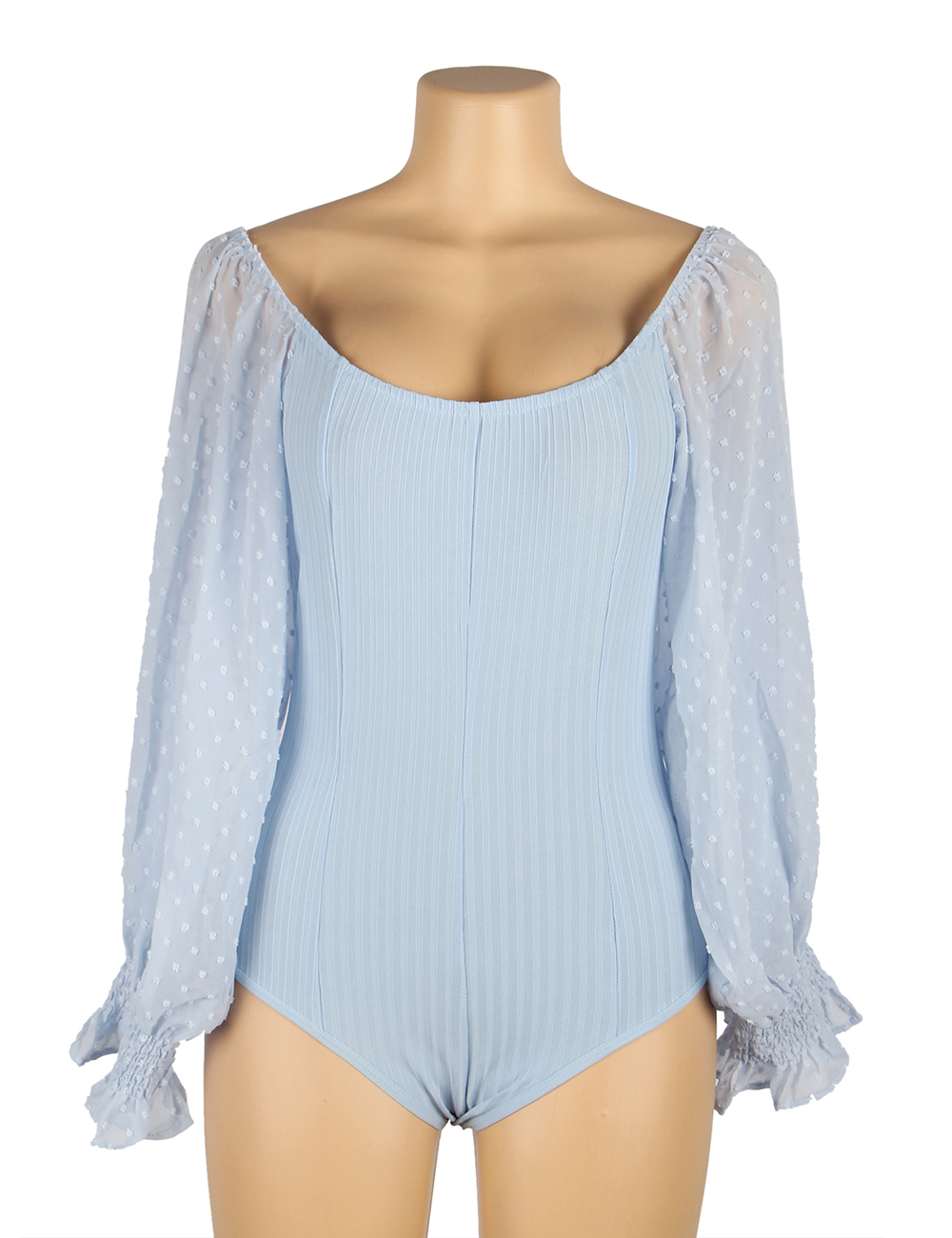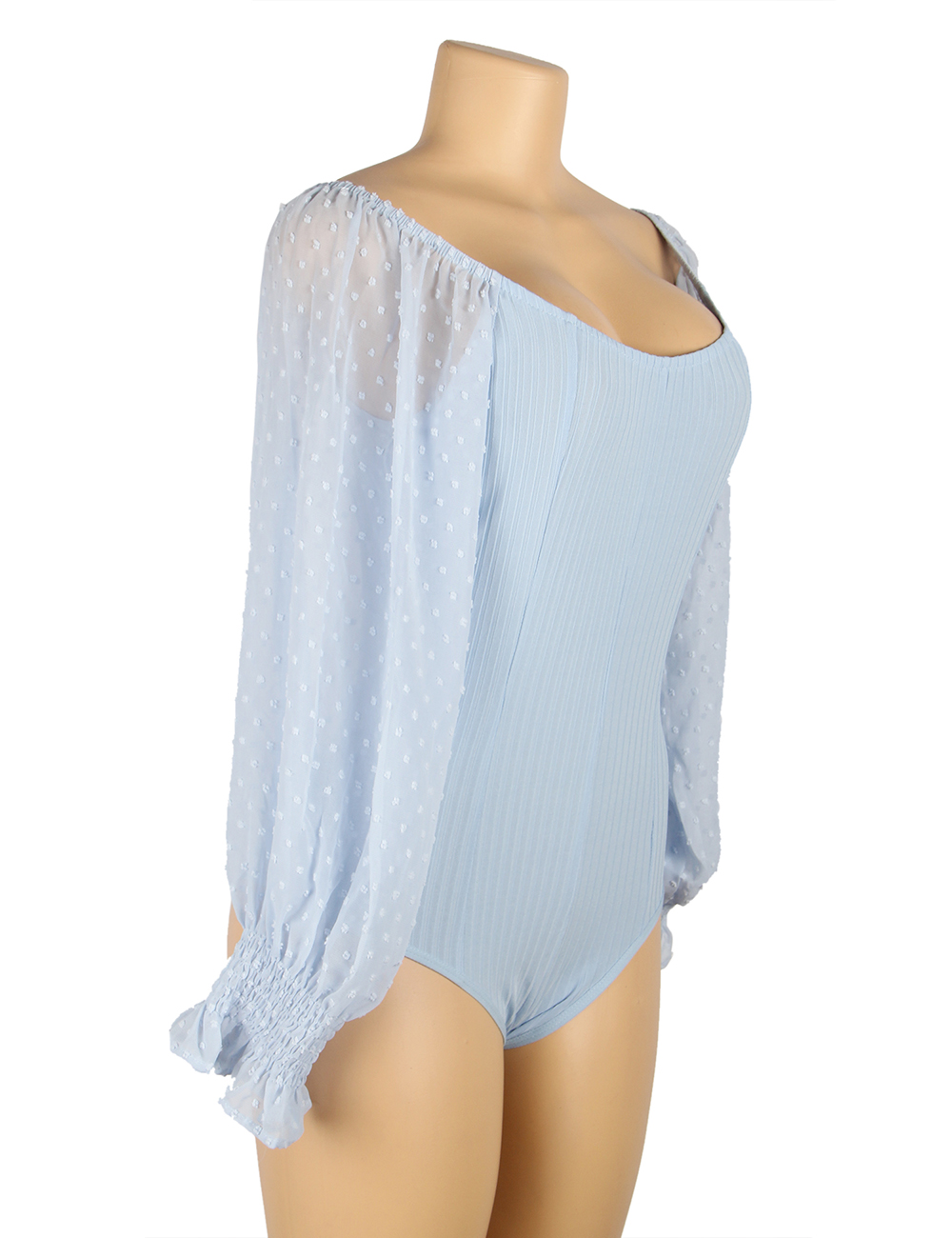 Product Name One-piece Blue Off Shoulder Long Sleeve Fashion Bodysuit