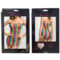 Home > BodyStockings Wholesale > Rainbow Colorful Off Shoulder Sleeveless Fishnet Bodystocking