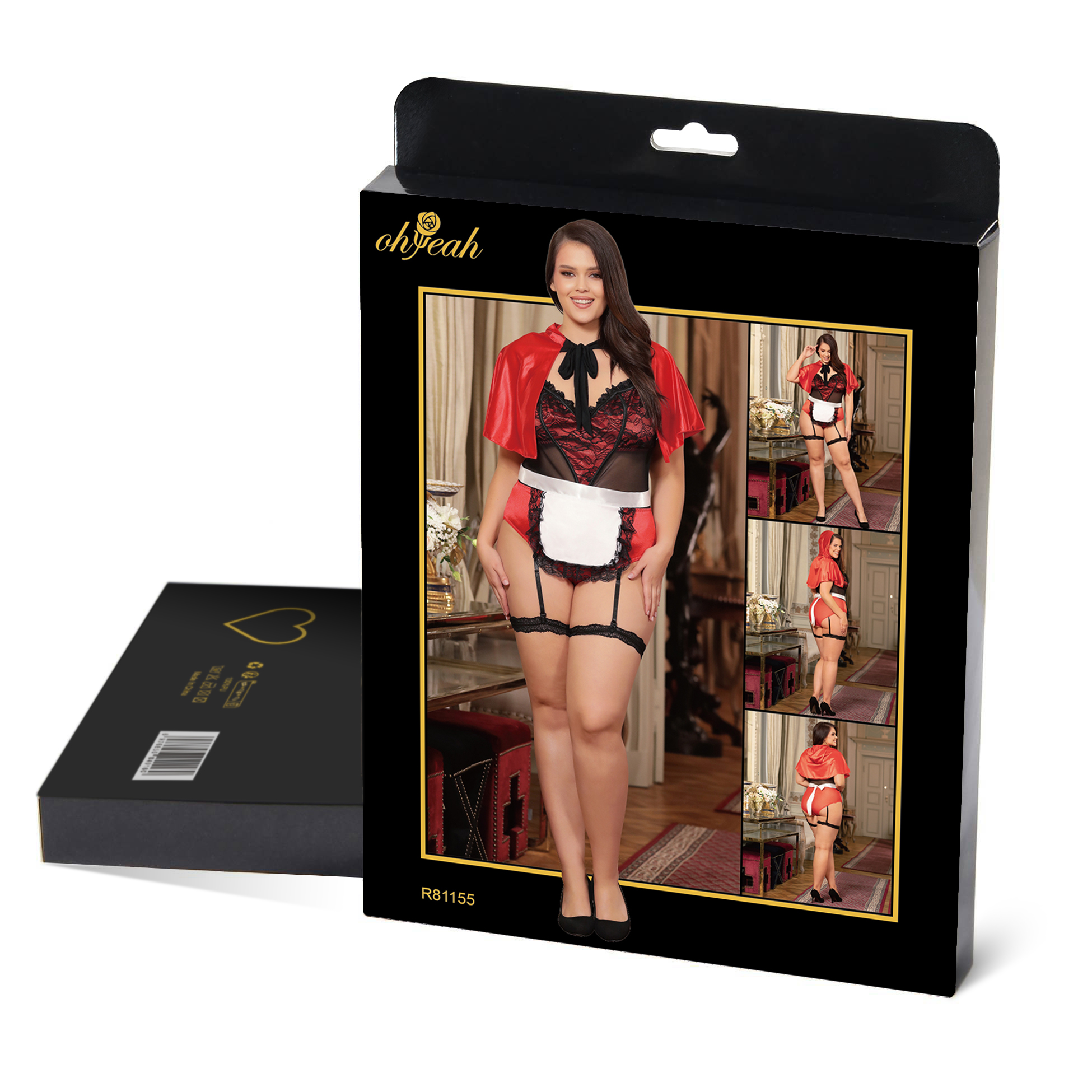 The R81155 Sexy Costume created by ohyeah company is an amazing piece that offers a variety of advantages to women who want to add a touch of allure and excitement to their wardrobe. This Sexy Costume has a number of impressive features that make it different from other costume alternatives. One of the main advantages of this Sexy Costume is the use of high-quality fabrics. The primary fabric is made from thin mesh, delivering both breathability and sexiness. The chest area is adorned with lace and flower embroidery, creating a gorgeous and dainty appearance that adds to the overall charm of the costume. Another unique feature of the R81155 Sexy Costume is the detachable lace leg loops, which brings playfulness and excitement to the piece. The four elastic garter straps are also adjustable, enabling women to customize the fit and feel of the costume. The costume also comes with a genuine silk cloak and apron, providing a comprehensive and authentic look for the wearer. The adjustable shoulder straps ensure a comfortable and secure fit, allowing women to feel confident and sexy while wearing the costume. In conclusion, the R81155 Sexy Costume is a must-have for women who are seeking a fun and exciting costume alternative. With its thin mesh fabric, lace and embroidery detailing, detachable leg loops, and realistic silk cloak and apron, this costume is both sensual and playful. The terms "Sexy Costume" and "sexy lingerie" are perfect descriptions of this piece, which is suitable for costume parties or intimate nights at home.