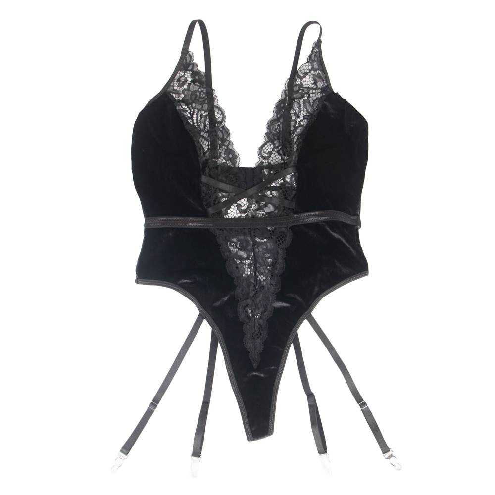 Product Name Deep V garter lace velvet stitching teddy