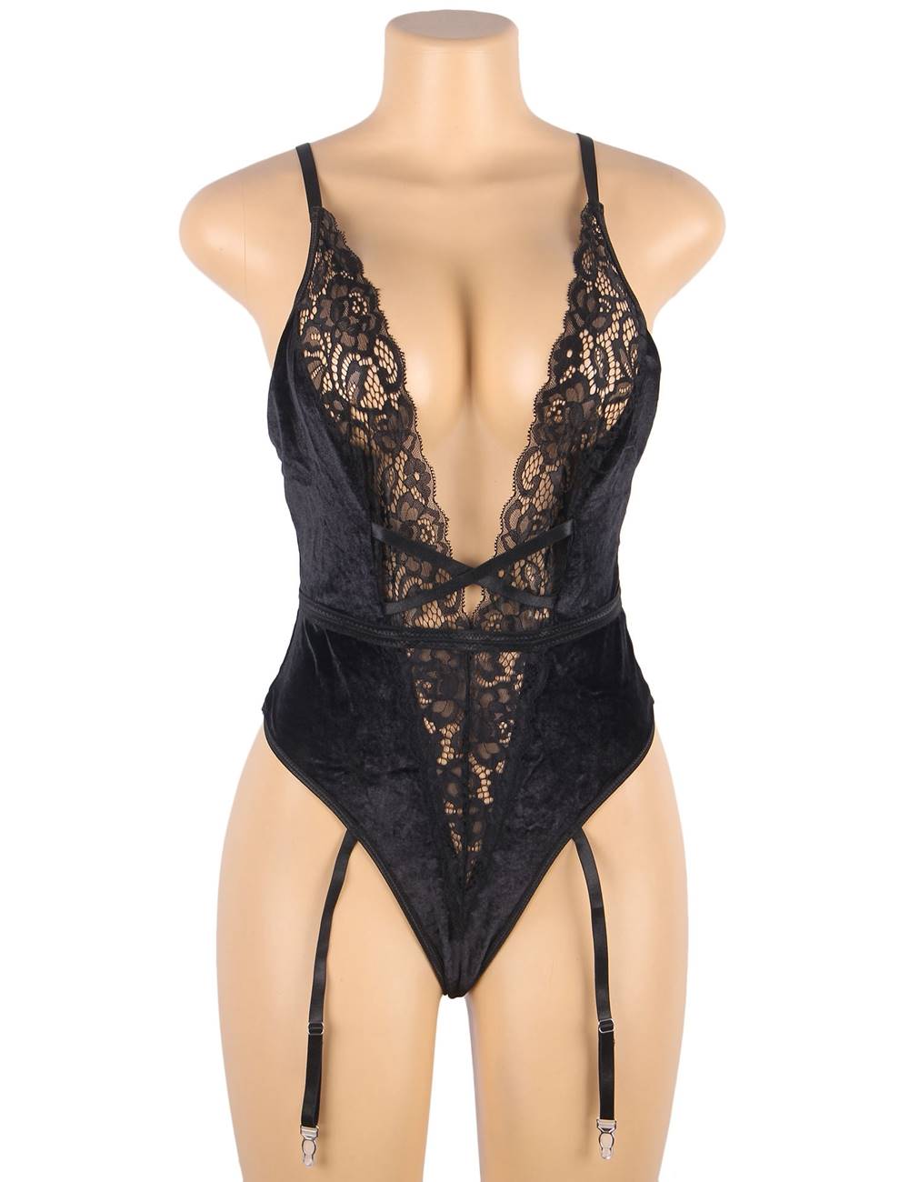 Home > Plus Size Teddy Supplier > Deep V garter lace velvet stitching teddy