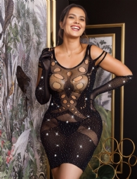 Product Name Black Sexy Sparkle Glitter Rhinestone Fishnet Hollow Bodystocking