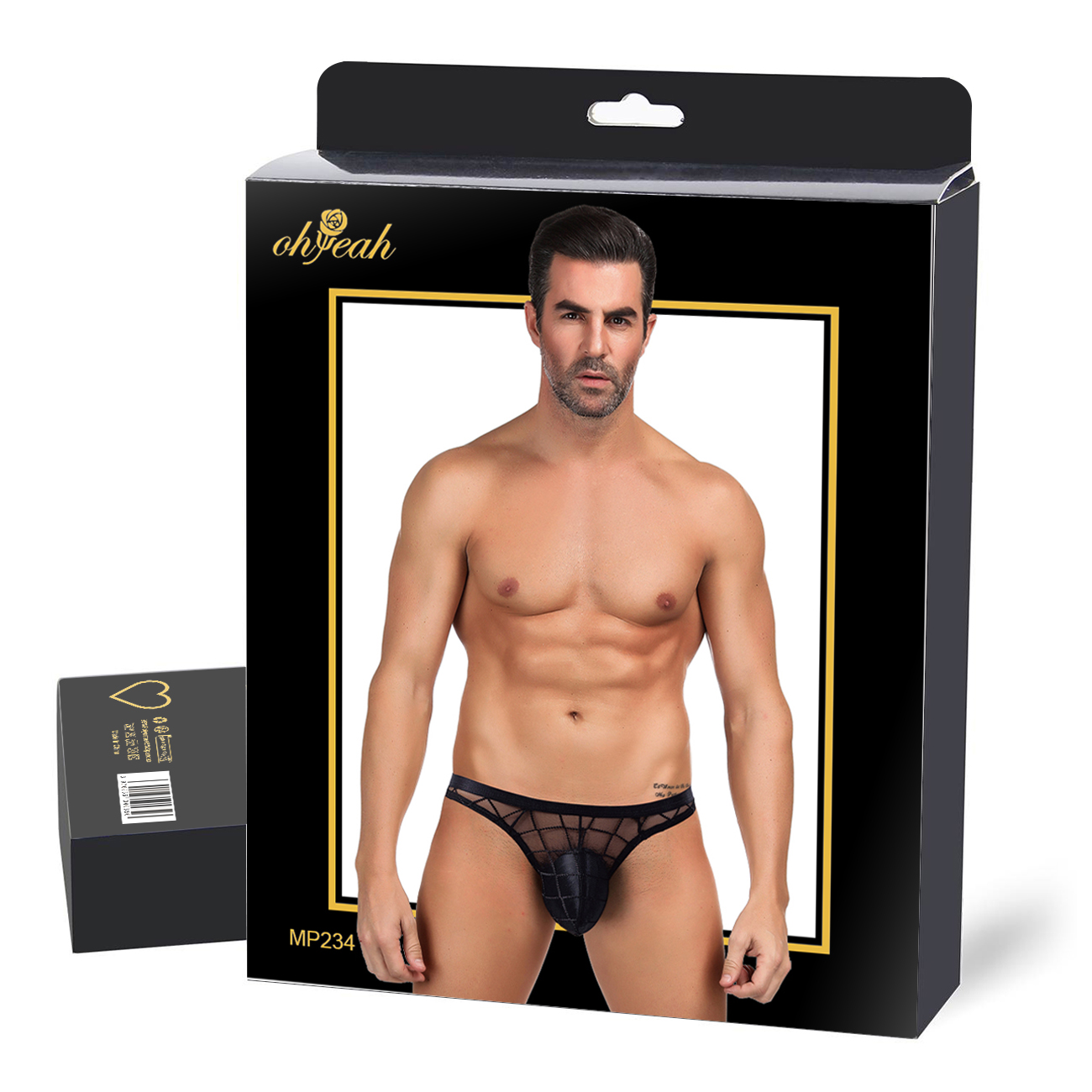 Standard product name: Black, diamond mesh fabric, wider elastic waistband, M-2XL, men`s sexy mid-low rise triangle pants.