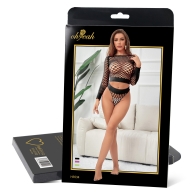 Home > Plus Size BodyStockings Wholesale > Black Long Sleeve Two-Piece Bodystocking With Fishnet Crop Top And Bottom