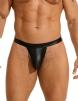 Standard product name: Black, golden colors, faux leather fabric, front U-shaped pouch design, M-2XL, men`s sexy faux leather thongs.