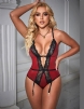 Standard Product Name: Red, faux leather + lace, deep V-neck, detachable metal chain at the bust, nine-button opening, adjustable bust, hollowed-out crotch, detachable garter straps, M-5XL plus size, sexy suspender bodysuit