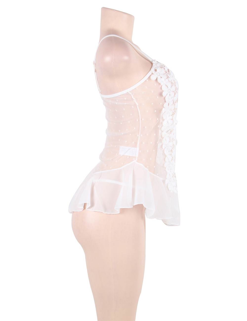 Product Name Dotted White Stereoscopic Flower Lace Babydoll