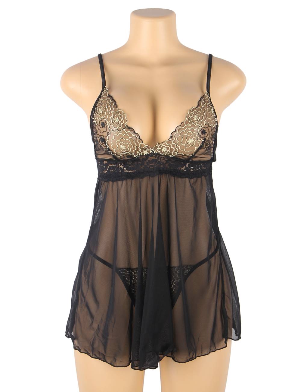 Product Name Elegant Black See-through Lace Exquisite Embroidery Sexy Babydoll
