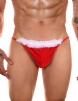 Main Keywords: plush, white fur strip, red and white color scheme, men`s thong.