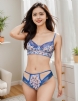 Home > > Blue Lace floral stitching Cross Straps Bra Set With Underwire