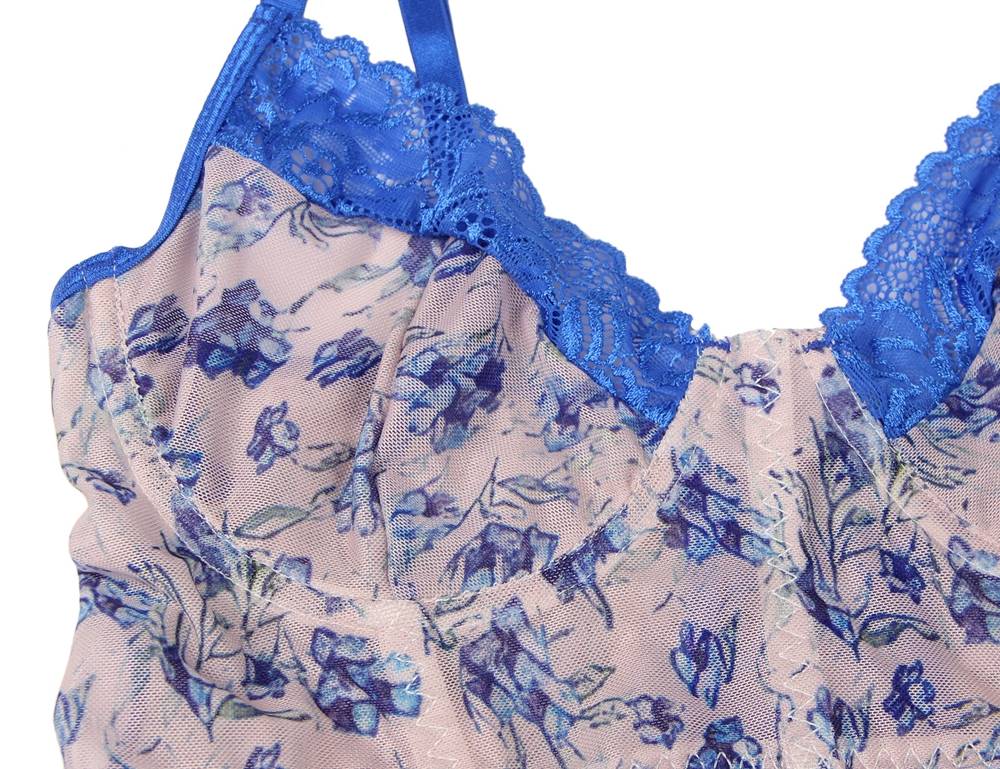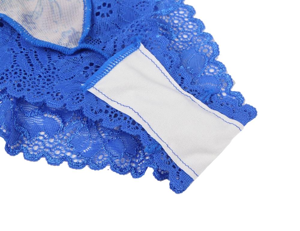 Product Name Blue Lace floral stitching Cross Straps Bra Set With Underwire