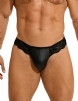 Standard product name: Black, PU leather, waistband with lace trim, hollow back, front U-shaped bulge pouch design, M-3XL, men`s sexy PU leather lace-trimmed underwear.