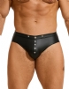 Standard Product Name: Black, PU leather, paired with round and star-shaped rivets, triangle style, front U-shaped pouch design, M-3XL, men`s sexy PU leather briefs.