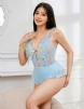 Product Name Blue Sexy Lace See Through Butterfly Bodysuit