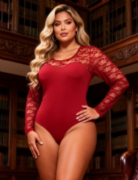 Product Name Burgundy Sexy Swim Cloth Lace Long Sleeves Open Crotch Bodysuit