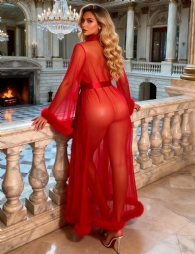 Another unique feature of R81759 is the use of thick mink fur strips trimmed throughout the robe, adding a touch of luxury and sophistication to the lingerie. The combination of mesh fabric and thick slimming creates a beautiful contrast that is sure to make you feel confident and sexy.