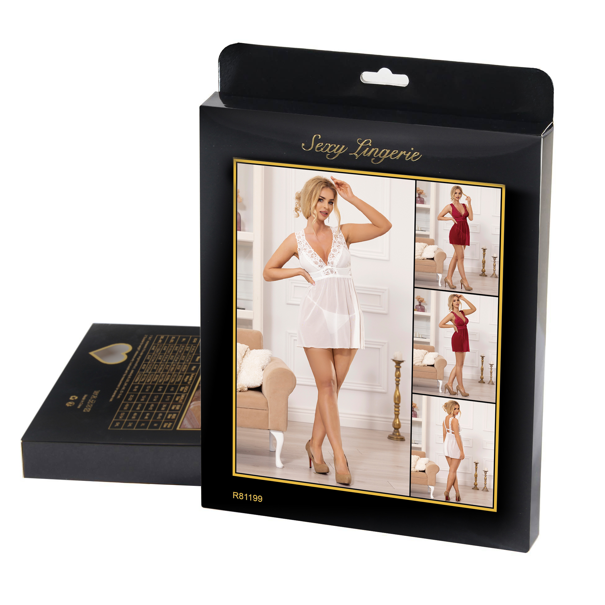Product Name White Deep V-neck Mesh Sexy Babydoll