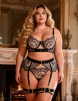 Home > Plus Size Bra Wholesale > Black Sexy Mesh Embroidery Lace Garter Bra Set