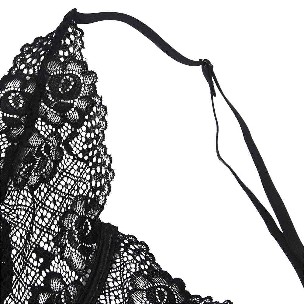 Product Name Plus Size Black Lace Floral Decoration Underwire Backless Leather Lingerie